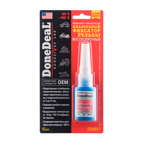 Неразъемный (высокопрочный) анаэробный фиксатор резьбы необходимо использовать во всех случаях, когда резьбовое соединение должно противостоять высоким напряжениям, ударным нагрузкам, вибрации, агрессивному химическому воздействию и влиянию неблагоприятных условий при эксплуатации.