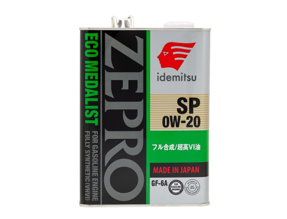 Zepro Eco Medalist SP/GF-6A 0W-20 произведено на основе смеси синтетического (гидрокрекинг) базового масла, эфиров и новейшего пакета присадок, разработанного с применением уникальной технологии Idemitsu. Энергосберегающее высококачественное моторное масло для самых современных бензиновых двигателей, характеризующихся высокой топливной экономичностью, в том числе с турбонаддувом и непосредственным впрыском.